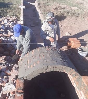 Con mano de obra local más materiales como ser ladrillos de producción propia se sigue con la construcción de los accesos y paseos intermedios