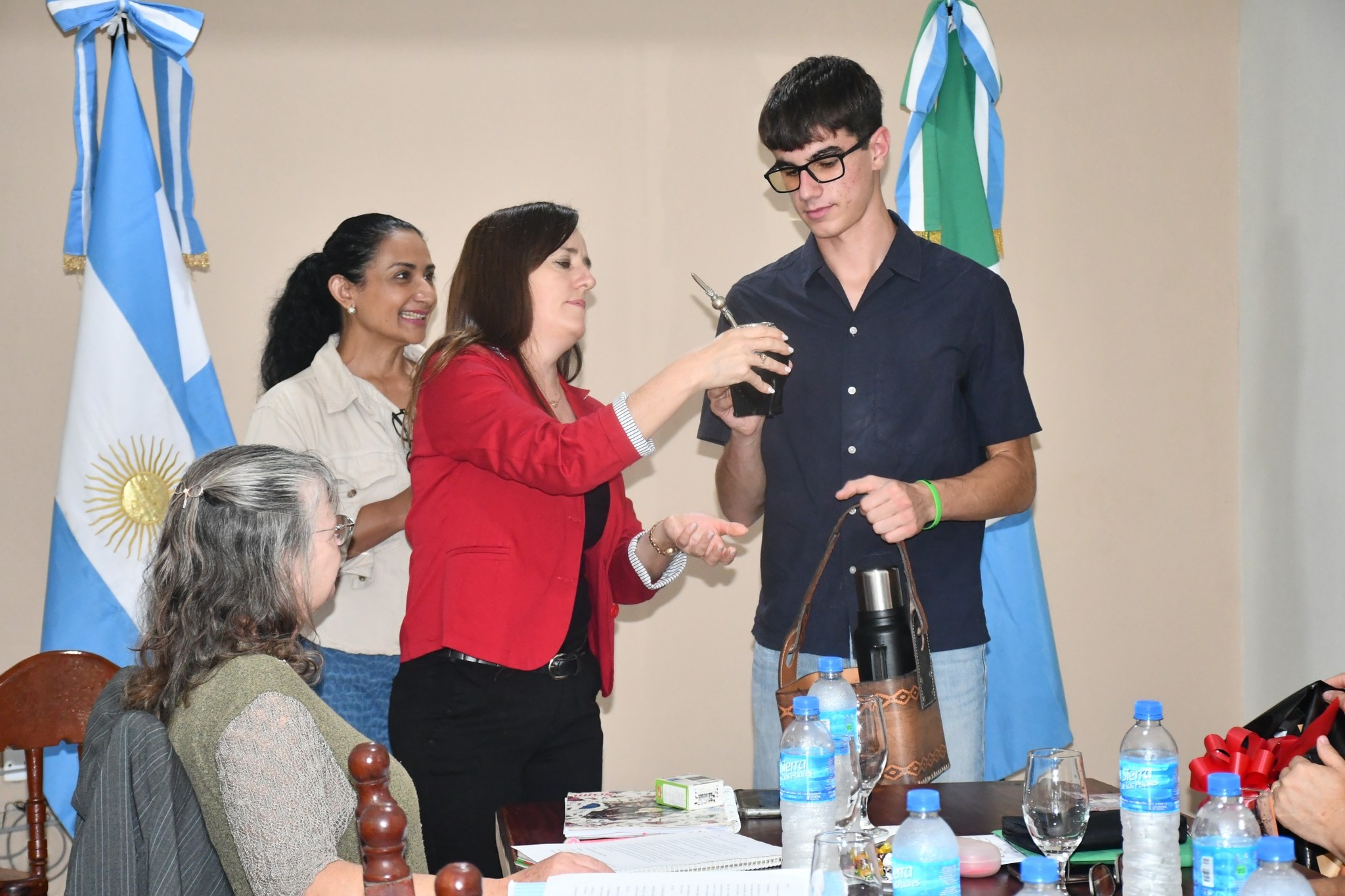 El Concejo municipal de mano de su Presidente María José Suárez le entregó un presente y una resolución de beneplácito por la estadía en la ciudad , deseando que esta interección cultural sea satisfactoria tanto para el como para los jovenes de Campo Largo que tendrán contacto con el mismo hermanando las dos culturas