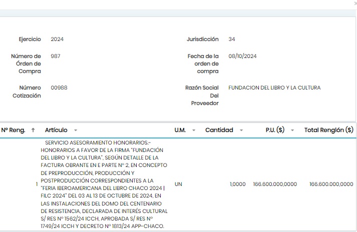 En el mes de Octubre del año 2024, el Gobierno Provincial destinó una suma millonaria para la realización del evento, que en dicha oportunidad destinaron millones de pesos a la Fundación a través del Instituto de Cultura de la Provincia Del Chaco.
