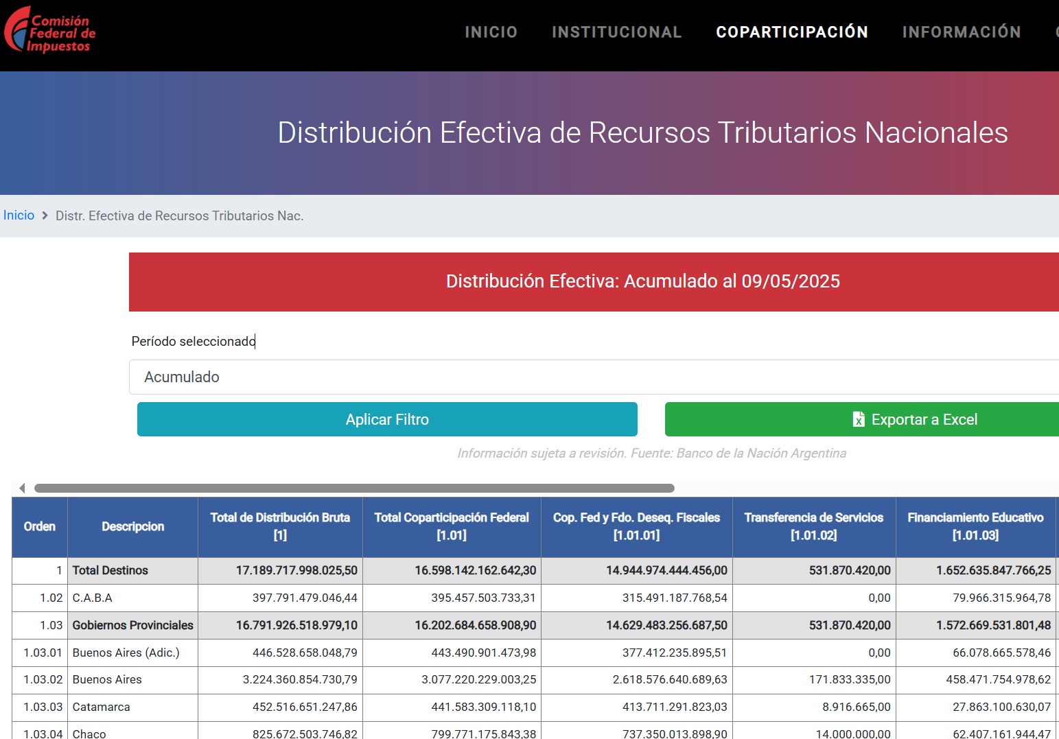 Hasta el día de la fecha el gobierno provincial recibió de Coparticipación Nacional el monto de $ 799.771.175.843,38 desde el 2 de enero de 2025 que son automáticas.