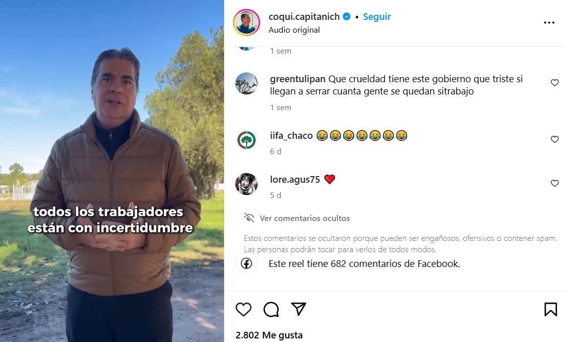 Pero se ve que la cuenta esta obsesionada con el perfil de Instagram del Ex Mandatario atento a que serían varias las publicaciones que desde el IFFA se marca o envía emojis para molestar a Capitanich