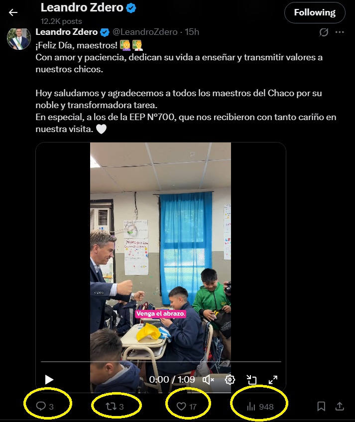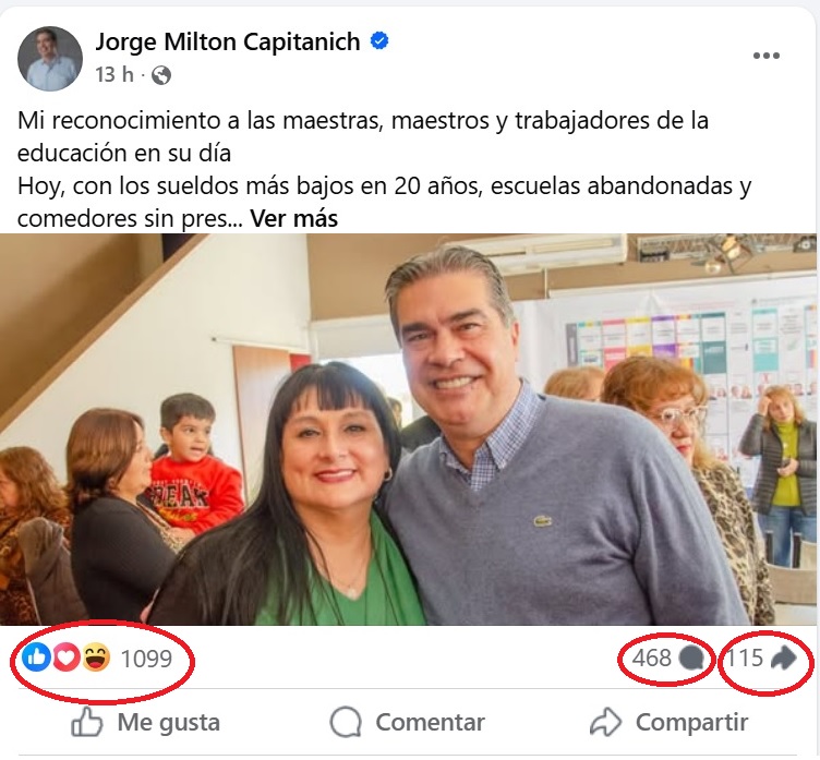 Tanto en Facebook como en X, los resultados quedan a la vista, y está demás decir que en el spot del gobernador se la pasó interactuando más con alumnos que con los homenajeados.
