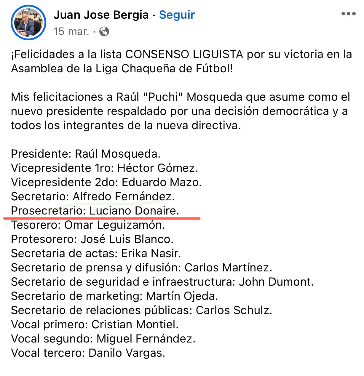 Aquí no termina los inconvenientes con Luciano Donaire también el Club Sarmiento se queda sin representante dentro de la Liga Chaqueña de Futbol, ya que el mismo fue elegido el 15 de marzo de 2024, e integra la lista como Prosecretario donde es Presidente Raúl Mosqueda. No dejo lugar donde no se metiera el ratoncito astuto de Capitanich y Baez