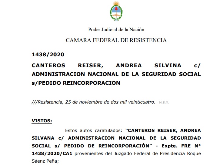 La Cámara Federal de Apelaciones de Resistencia con la firma de las Dra. Rocío Alcalá y Patricia García dicto el fallo de fecha 25/11/2024 donde ordena al Anses -