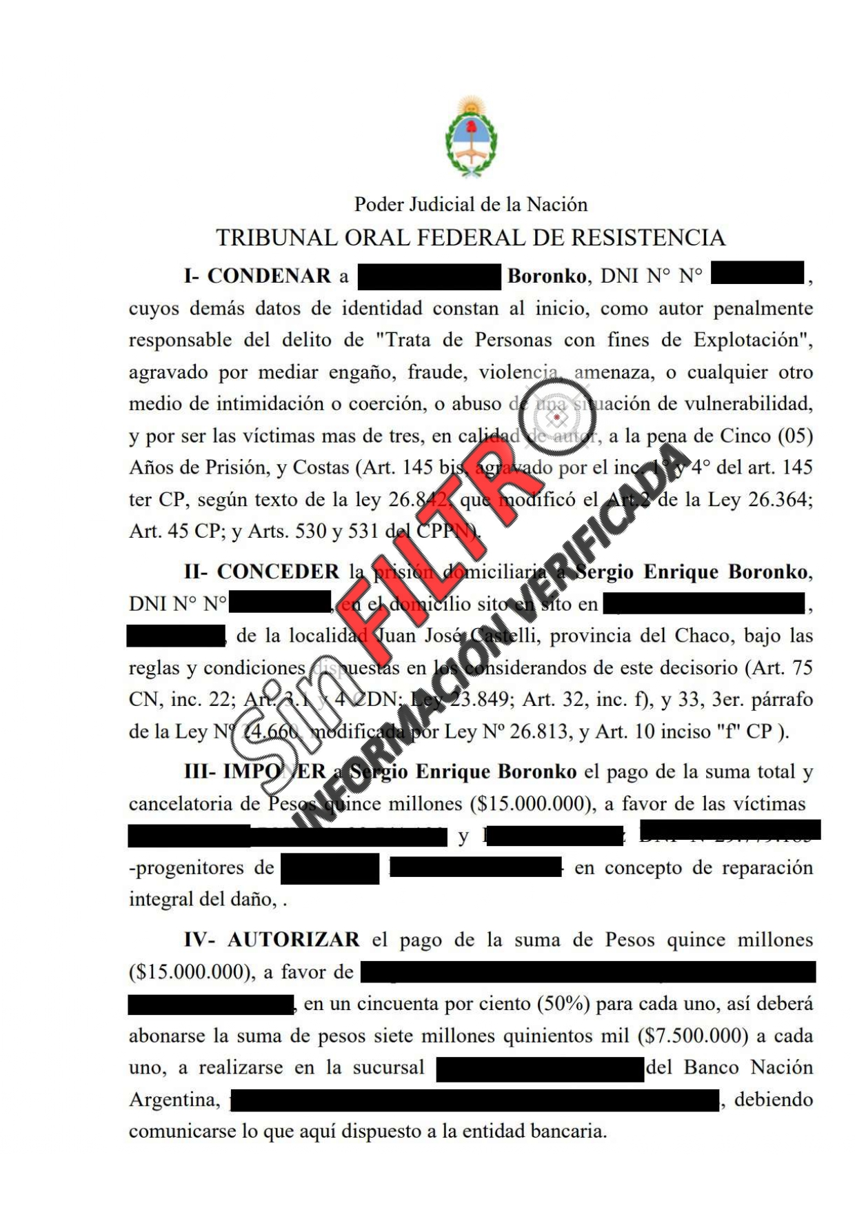 El 12 de Diciembre de 2024 el Tribunal Oral Federal de Resistencia condenó al Contratista a la pena de 5 años de prisión