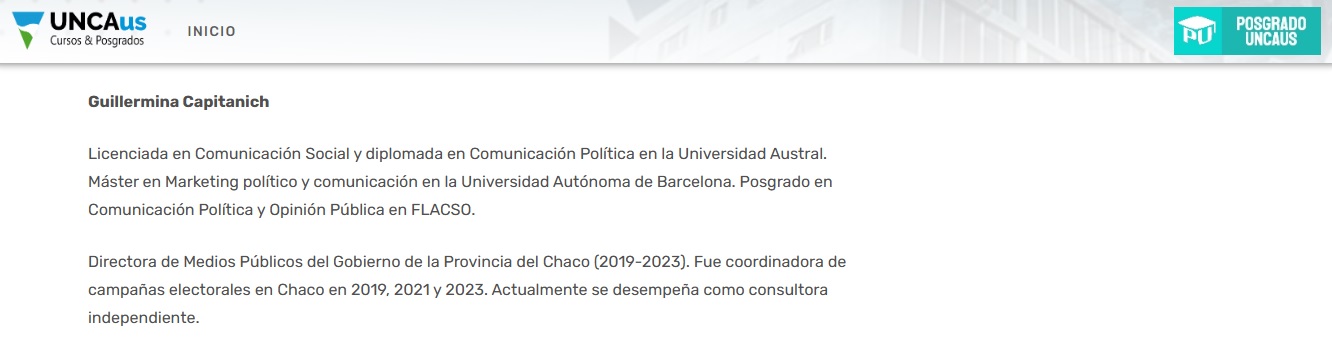 Pero la frutilla de la torta es Guillermina Capitanich quien en su curricumun describe: