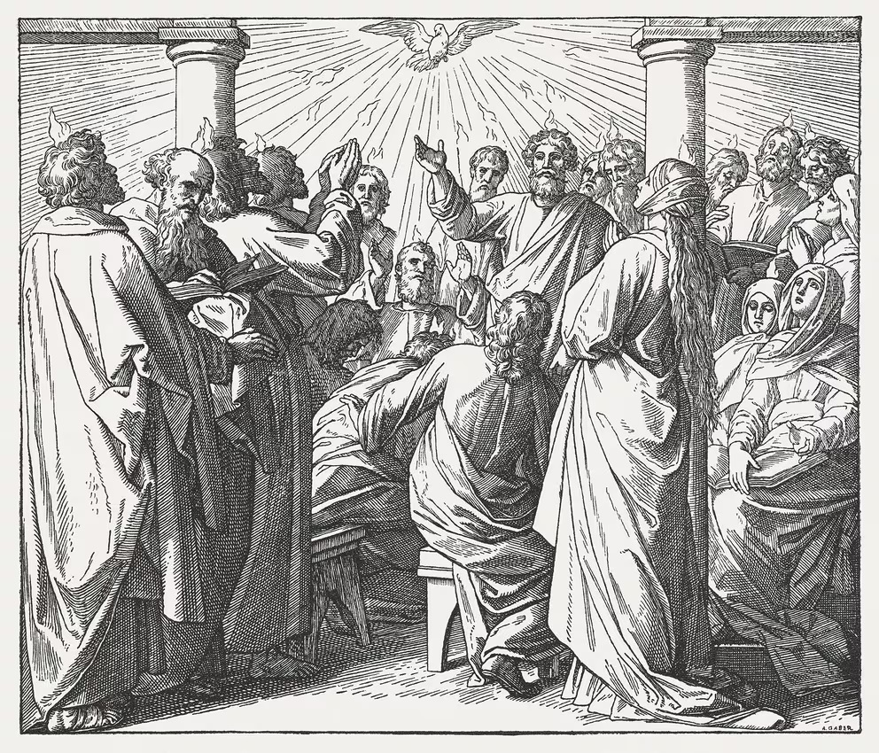 Este evento está registrado en el libro del Nuevo Testamento conocido como Los Hechos de los Apóstoles. El capítulo 2 comienza: “Cuando llegó el día de Pentecostés, estaban todos reunidos en el mismo lugar. De repente vino del cielo un ruido, como el de una violenta ráfaga de viento, que llenó toda la casa donde estaban, y aparecieron unas lenguas como de fuego que se repartieron y fueron posándose sobre cada uno de ellos. Todos quedaron llenos del Espíritu Santo y comenzaron a hablar en otras lenguas, según el Espíritu les concedía que se expresaran.”
