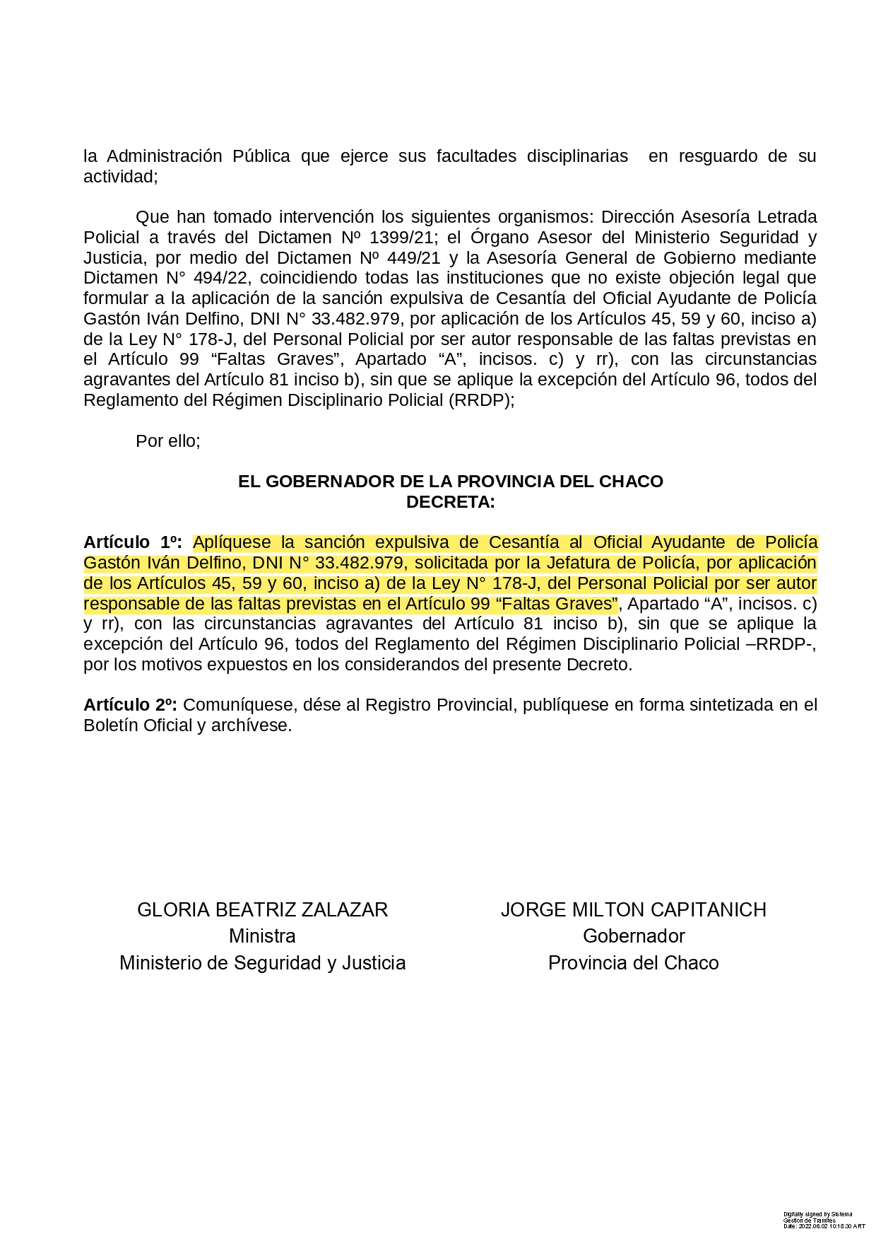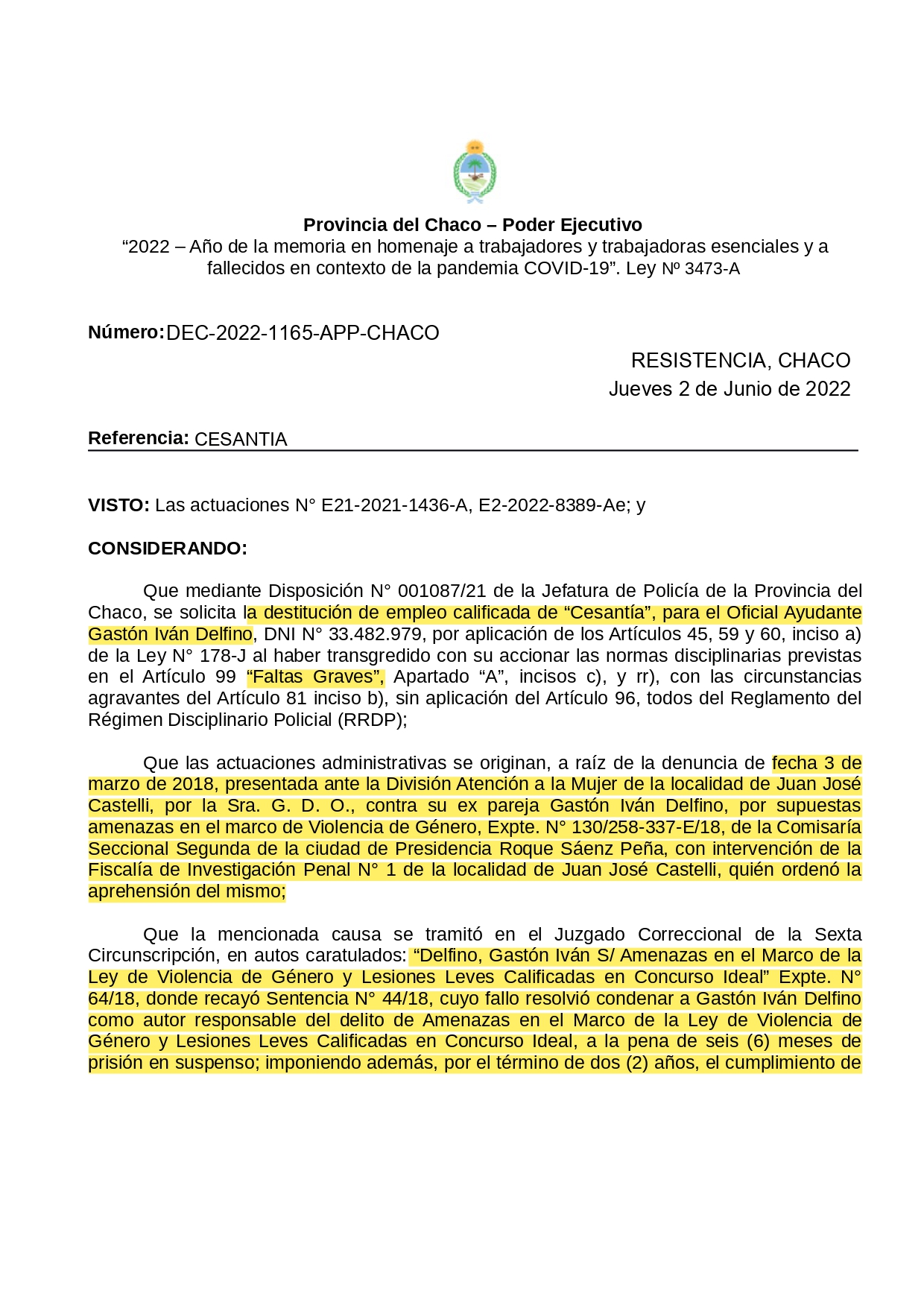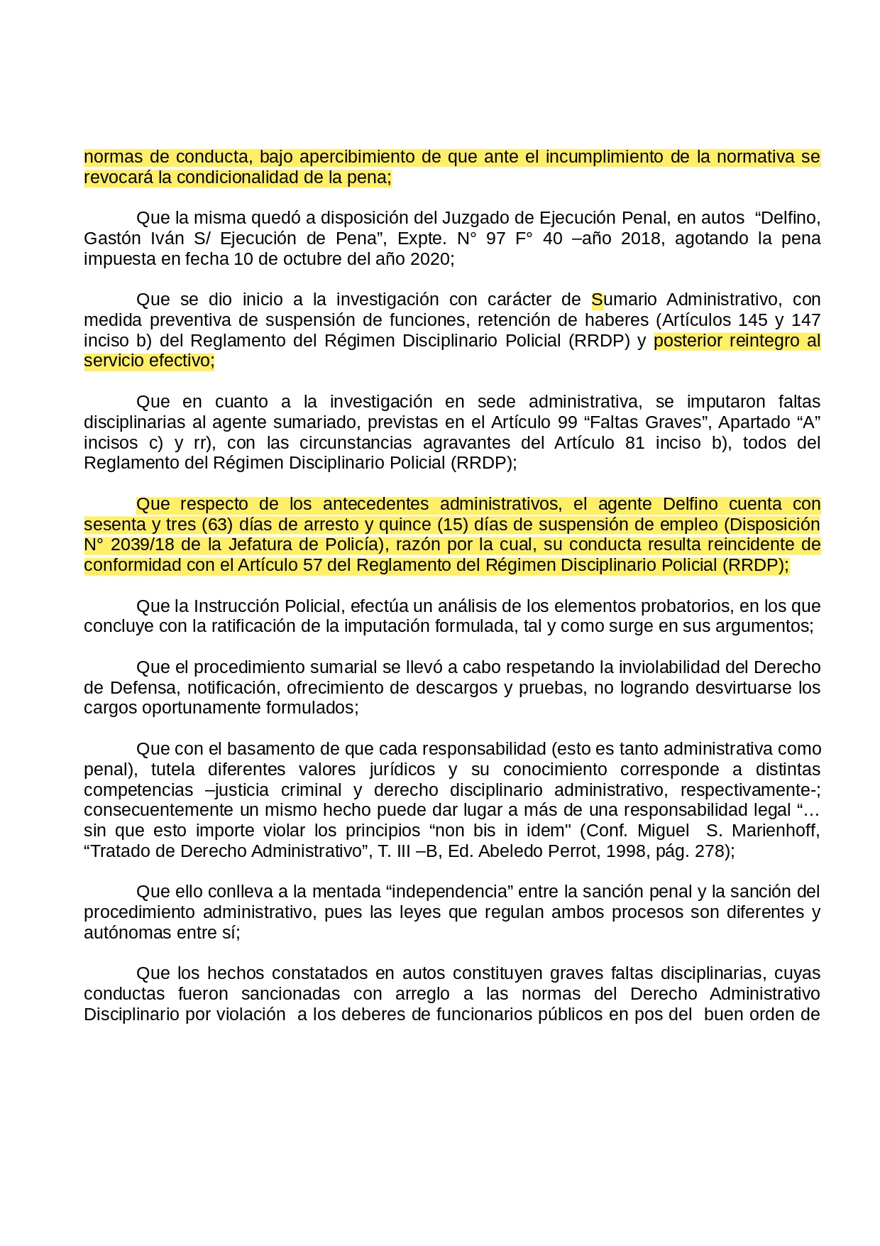 Hoy por hoy la sociedad y mi familia peligra al tener a una persona así en las calles, a través de sus pocos años dentro de la fuerza adquirió conocimientos que lo vuelven peligroso no posee freno, trata de manipular las situaciones a su favor ya fue condenado por violento y hoy debe asumir una condena por un homicidio en la justicia está el no volver a permitir que una madre piedra a su hijo que es algo antinatural lo natural y lógico es que los hijos deben enterrar a sus padres