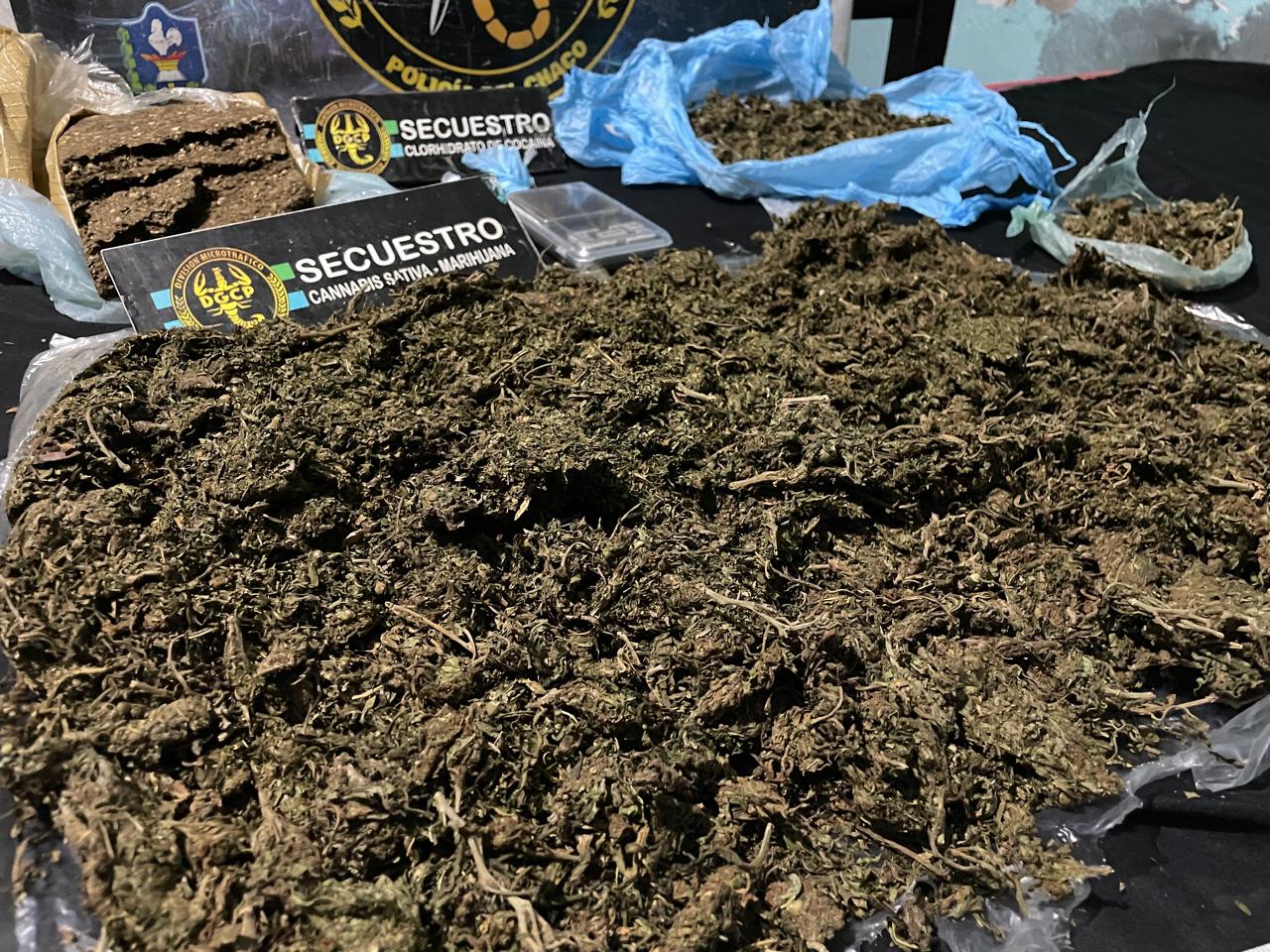 Al arribar a calle Duvivier al 100 aproximadamente en la capital chaqueña, los agentes incautaron un kilo y 342 gramos de marihuana, distribuidos en un formato rectangular. Además, dos envoltorios de 2,8 gramos de cocaína, 104.700 pesos en efectivo, una balanza de precisión, una tijera y un celular.