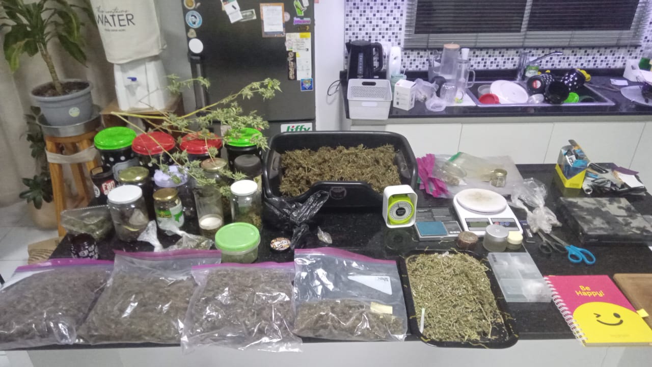 En el segundo domicilio, realizado sobre la misma calle entre Güemes y Lavalle, fue aprehendido un hombre de 46 años, y una mujer de 36 años fue notificada. Allí se halló un sistema de cultivo indoor con 49 plantines sin florar, 14 plantas floradas, además de cogollos en distintos estados de conservación que totalizaron 860 gramos, junto con balanzas, 612.400 pesos, elementos vinculados al cultivo y comercialización.
