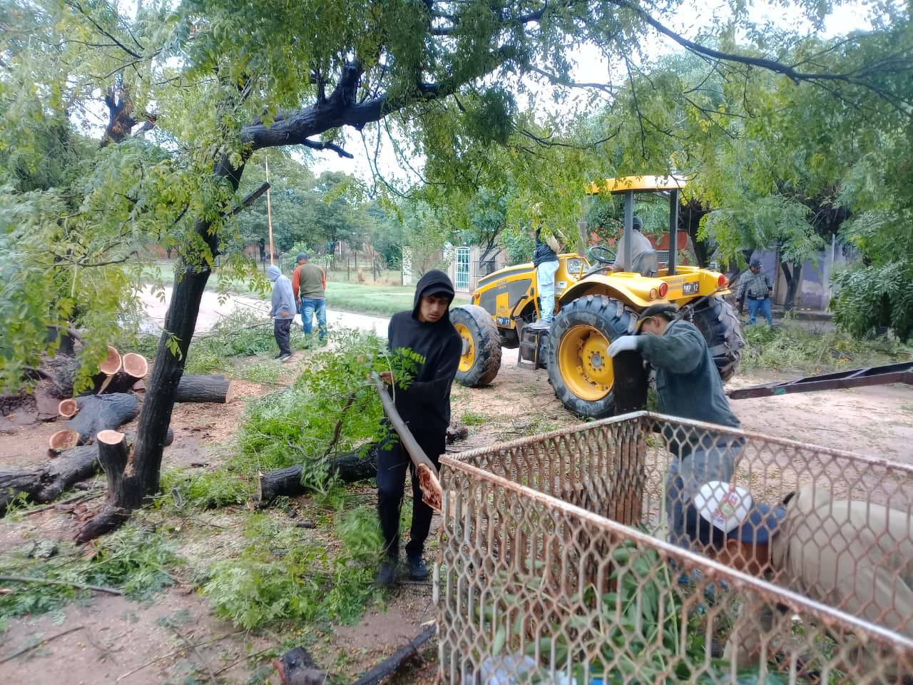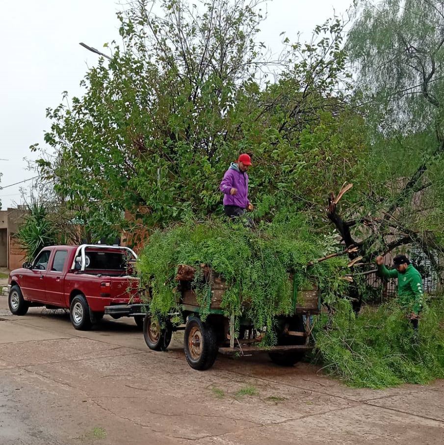 Uno de los principales inconvenientes fue la caída de ramas y árboles, lo que obligó a disponer de la totalidad de los recursos humanos y materiales del municipio para despejar calles y garantizar la circulación segura.