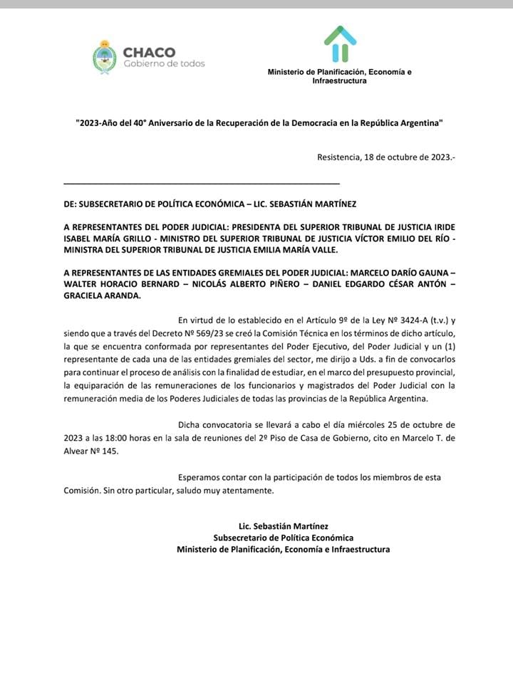 Hay que recordar que la semana pasada el Superior Tribunal de Justicia solicitó a los Trabajadores mesura en sus actos y decisiones puesto que a minutos del anuncio del primer paro por 48 Hs. desde el Ministerio de Economía convocaban a una reunión.